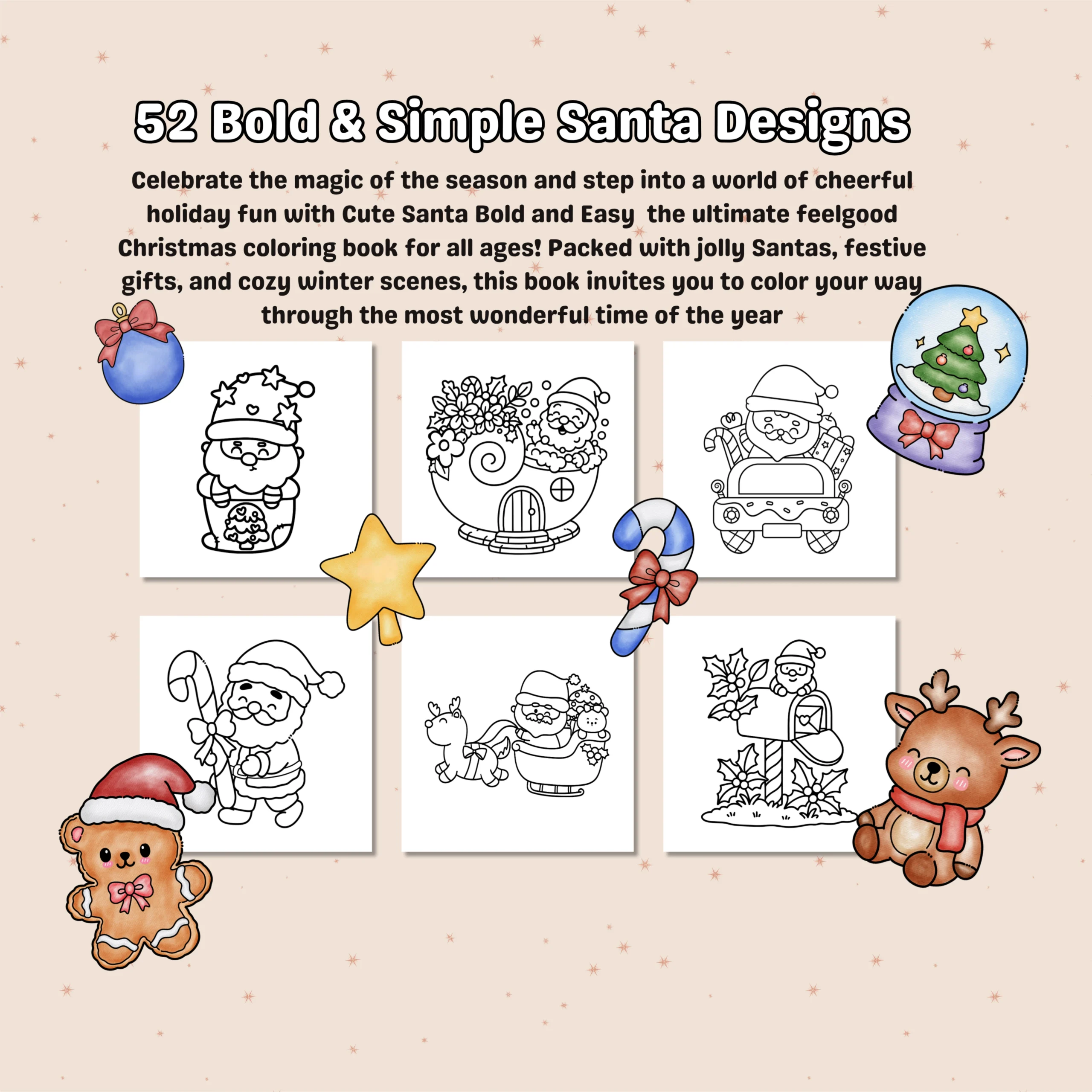 Unwind with cozy Christmas cheer alongside your family with Cute Santa: Bold and Easy. This delightful coloring book invites you on a warm and comfy creative escape, perfect for quiet moments alone or joyful family time. Designed with simplicity in mind, its bold lines and easy-to-color illustrations are effortlessly enjoyable for little hands while providing a relaxing and satisfying pastime for adults. Curl up with charming images of jolly Santas and festive patterns that capture the heartwarming spirit of the season. Each page is printed single-sided to prevent bleed-through, making it perfect for all your favorite coloring tools. Embrace the simple joy of adding color to the holidays and create a cherished new tradition together.